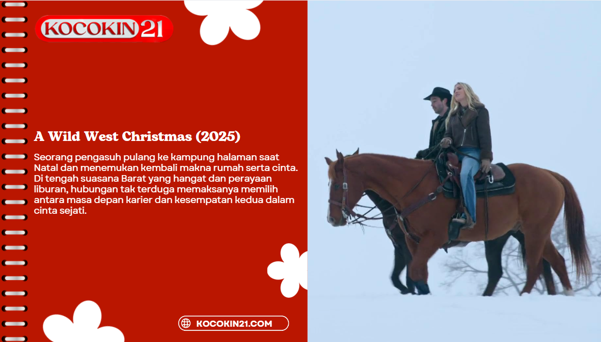 KOCOKIN21 menghadirkan kisah romansa hangat bernuansa liburan melalui A Wild West Christmas. Film ini memadukan suasana Natal yang penuh keajaiban dengan latar dunia Barat yang sederhana, menghadirkan cerita tentang pulang ke rumah, cinta lama, dan harapan baru.
