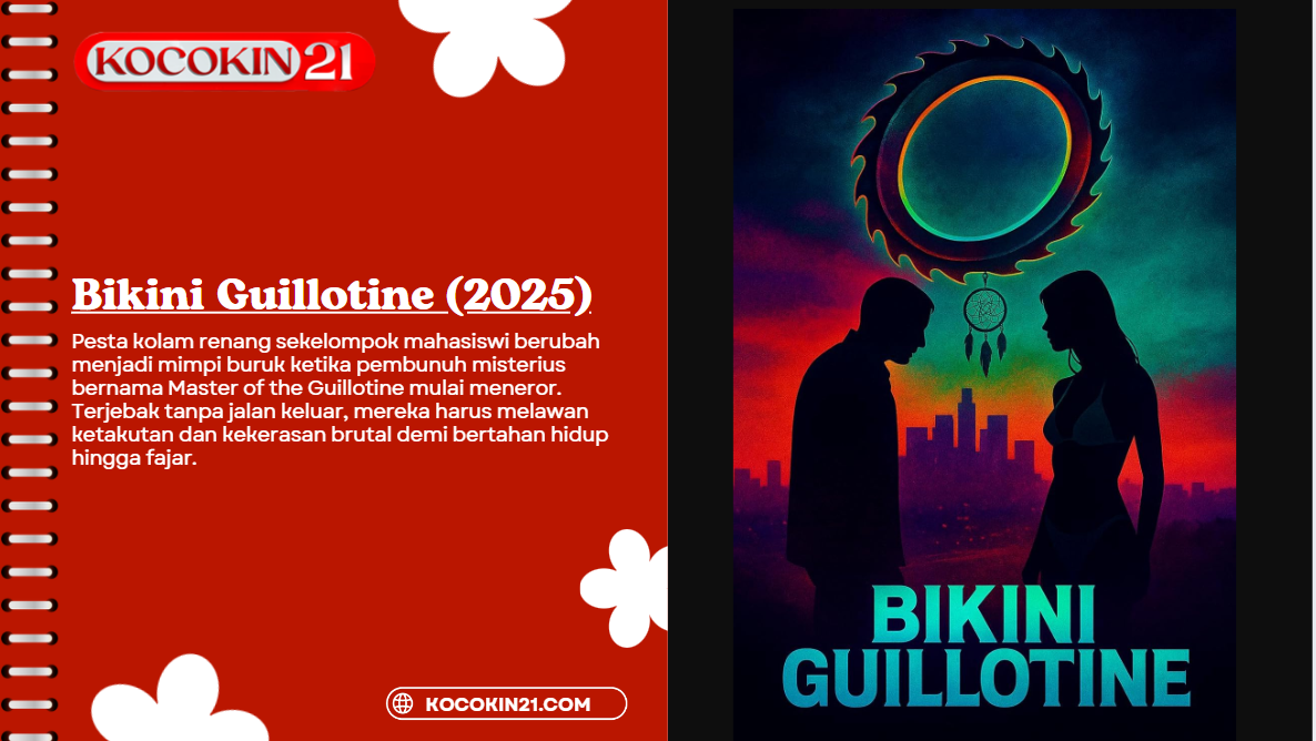 KOCOKIN21 kembali menghadirkan film horor slasher penuh darah dan ketegangan ekstrem melalui Bikini Guillotine. Film ini menyuguhkan teror brutal dengan nuansa eksploitasi modern, memadukan suasana pesta yang sensual dengan ancaman kematian yang kejam.
