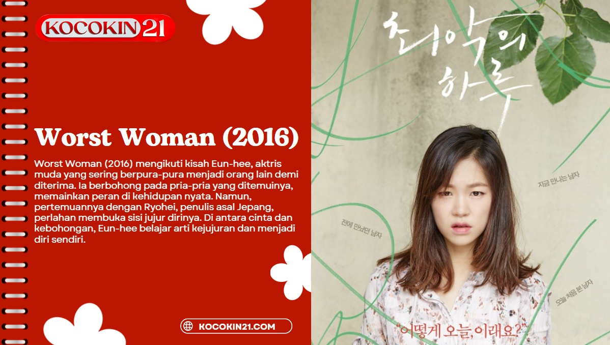 Worst Woman (2016) adalah film yang menelusuri lapisan kepribadian manusia bagaimana kita berbohong untuk diterima, dan bagaimana cinta bisa menjadi cara untuk mengenal diri sendiri. Sebuah film romantis, reflektif, dan emosional, cocok bagi KOCOKIN21 yang mencari tontonan dengan makna mendalam dan keindahan visual yang sederhana.